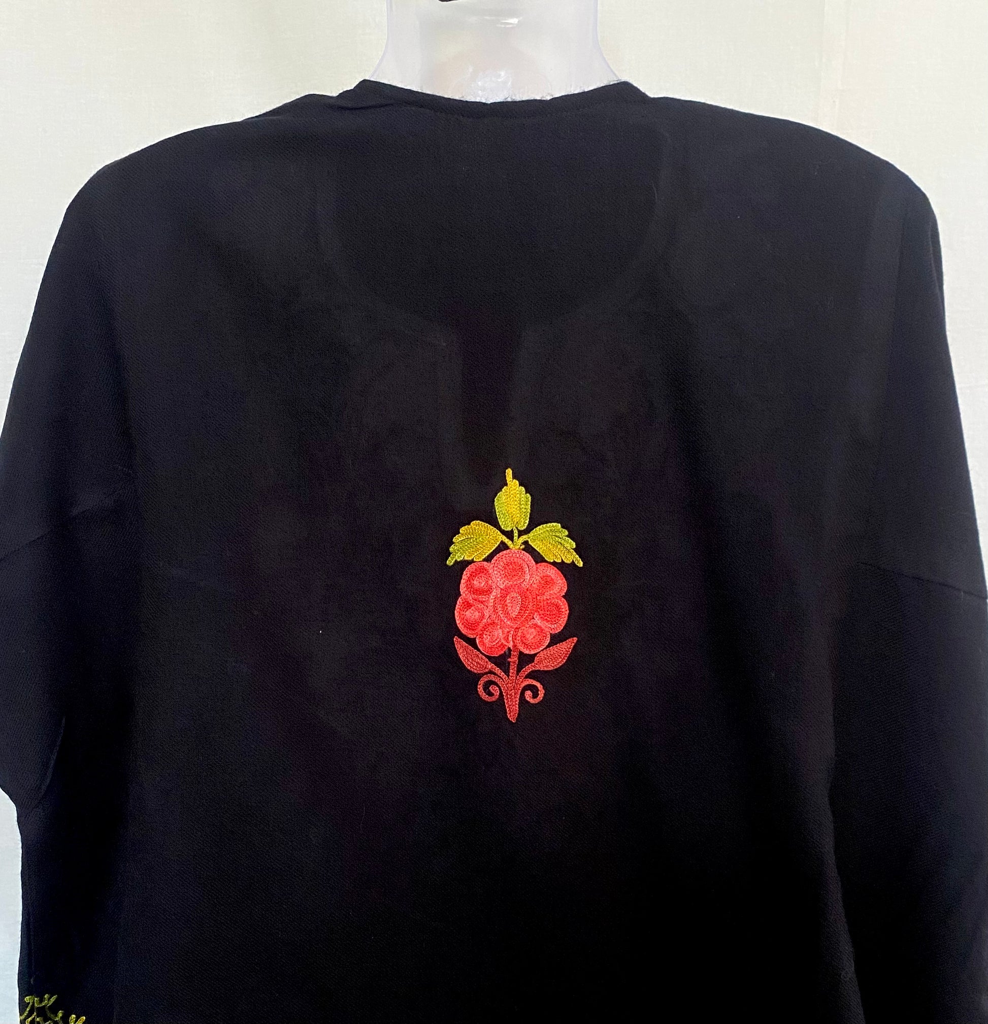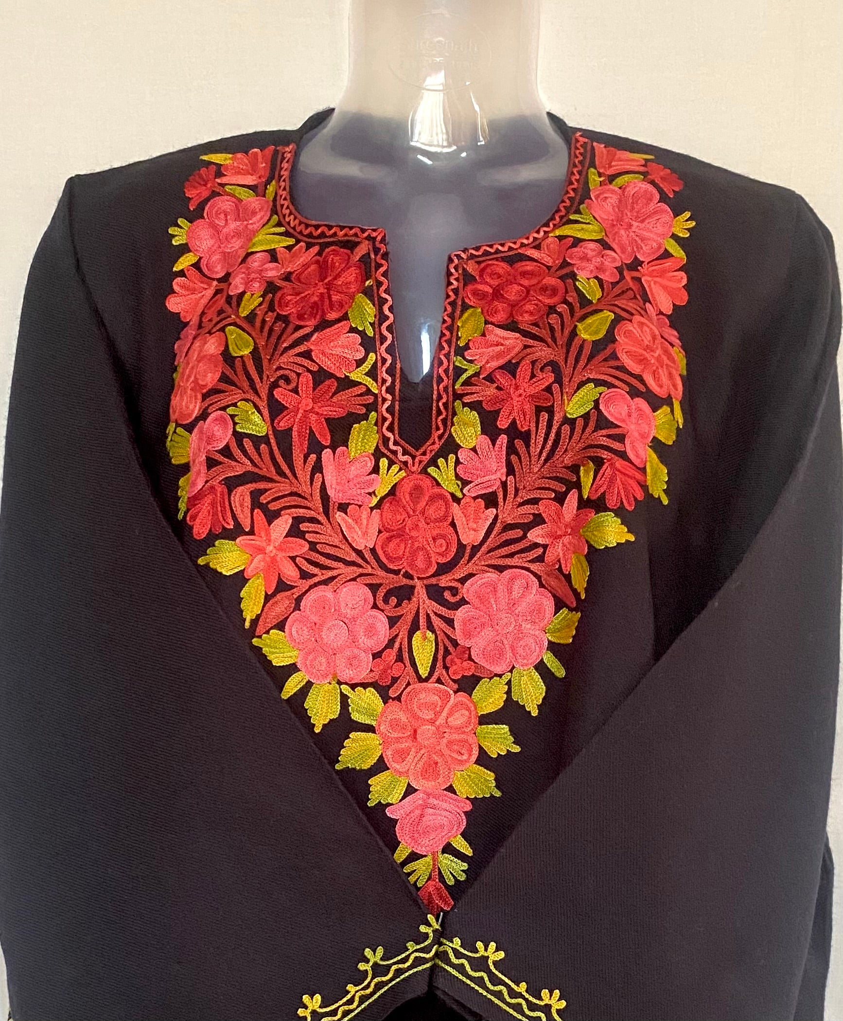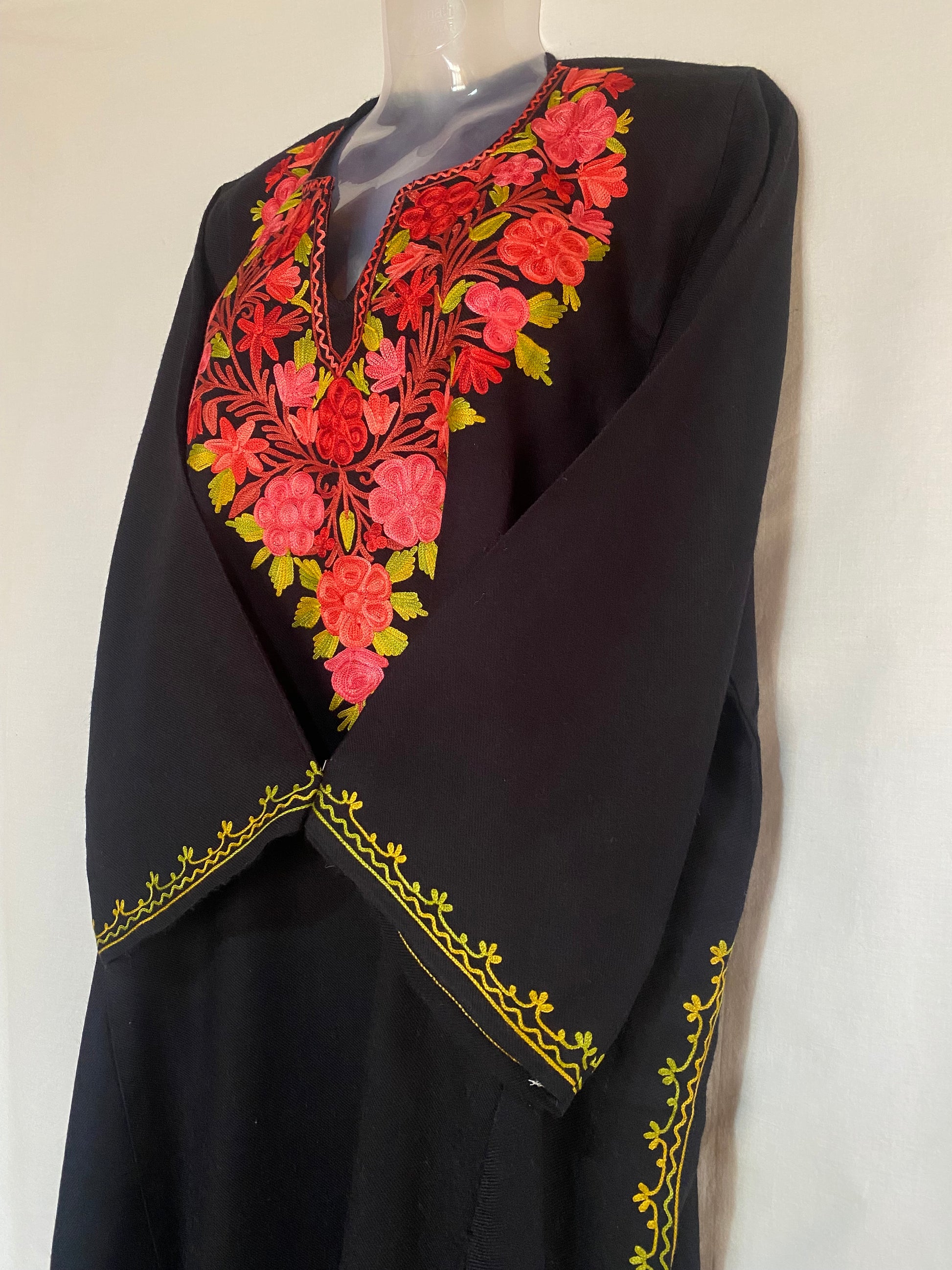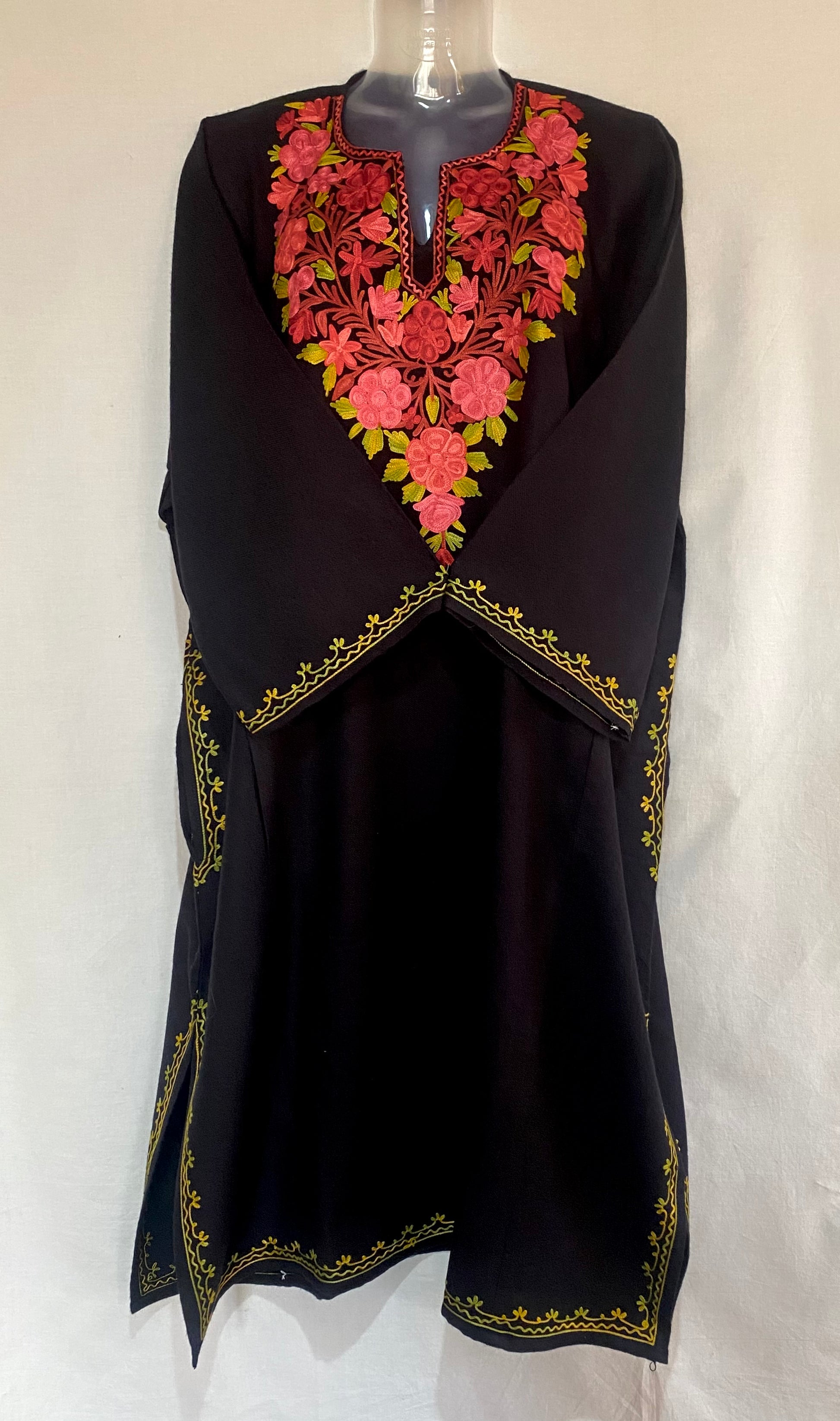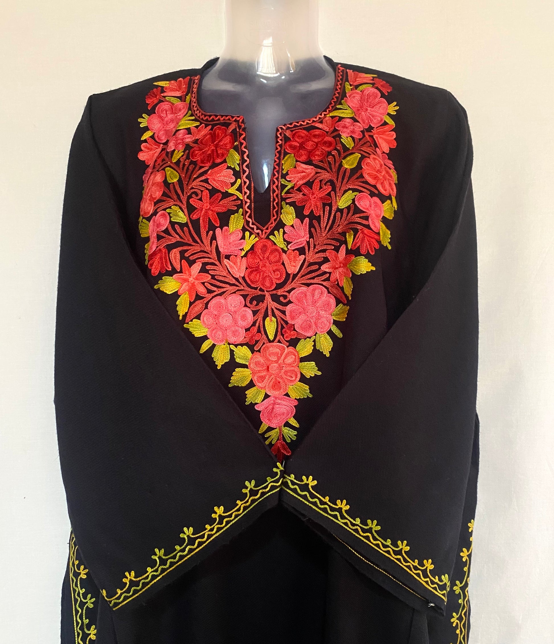 A classic black pheran that blends timeless elegance with cozy winter warmth, perfect for every occasion.