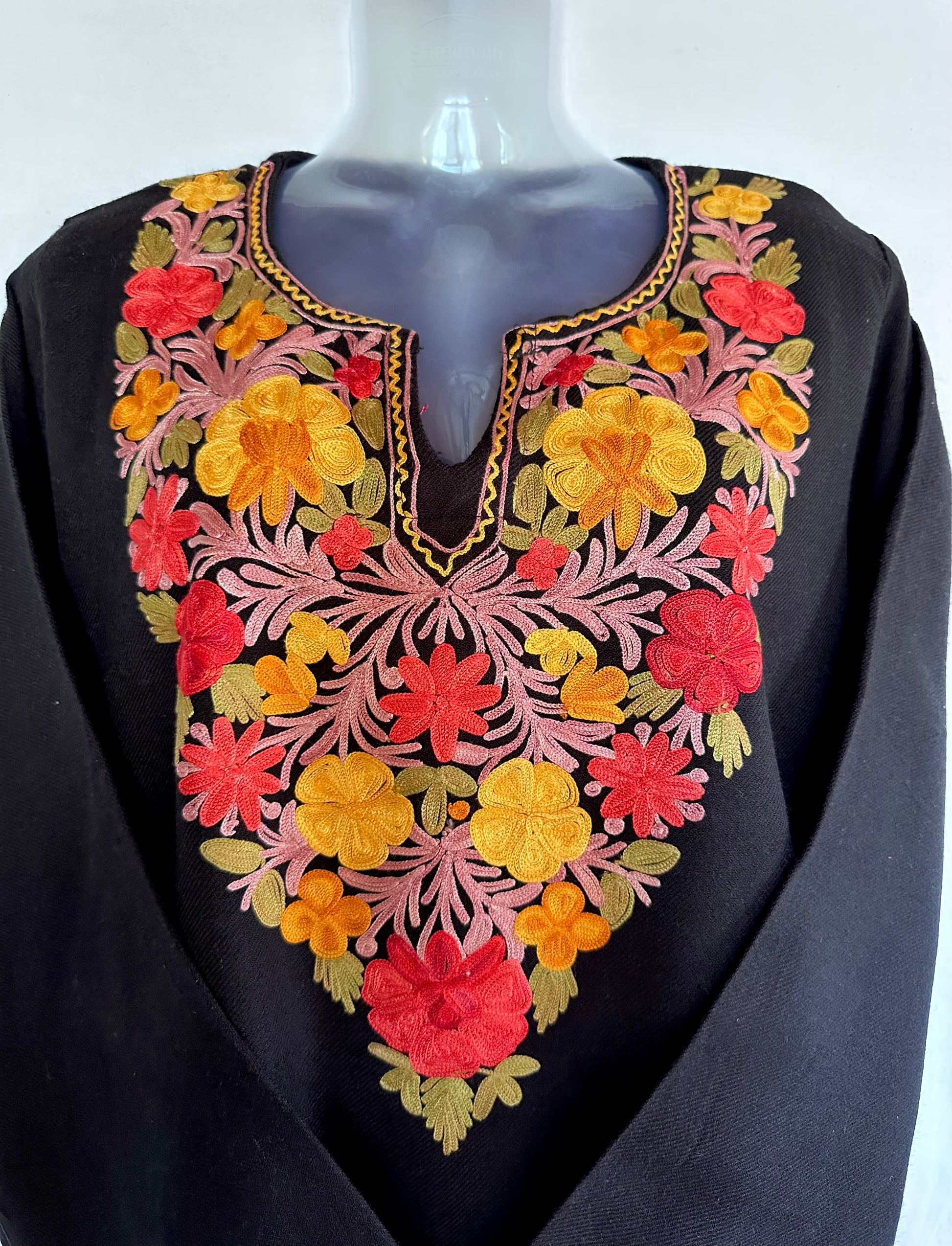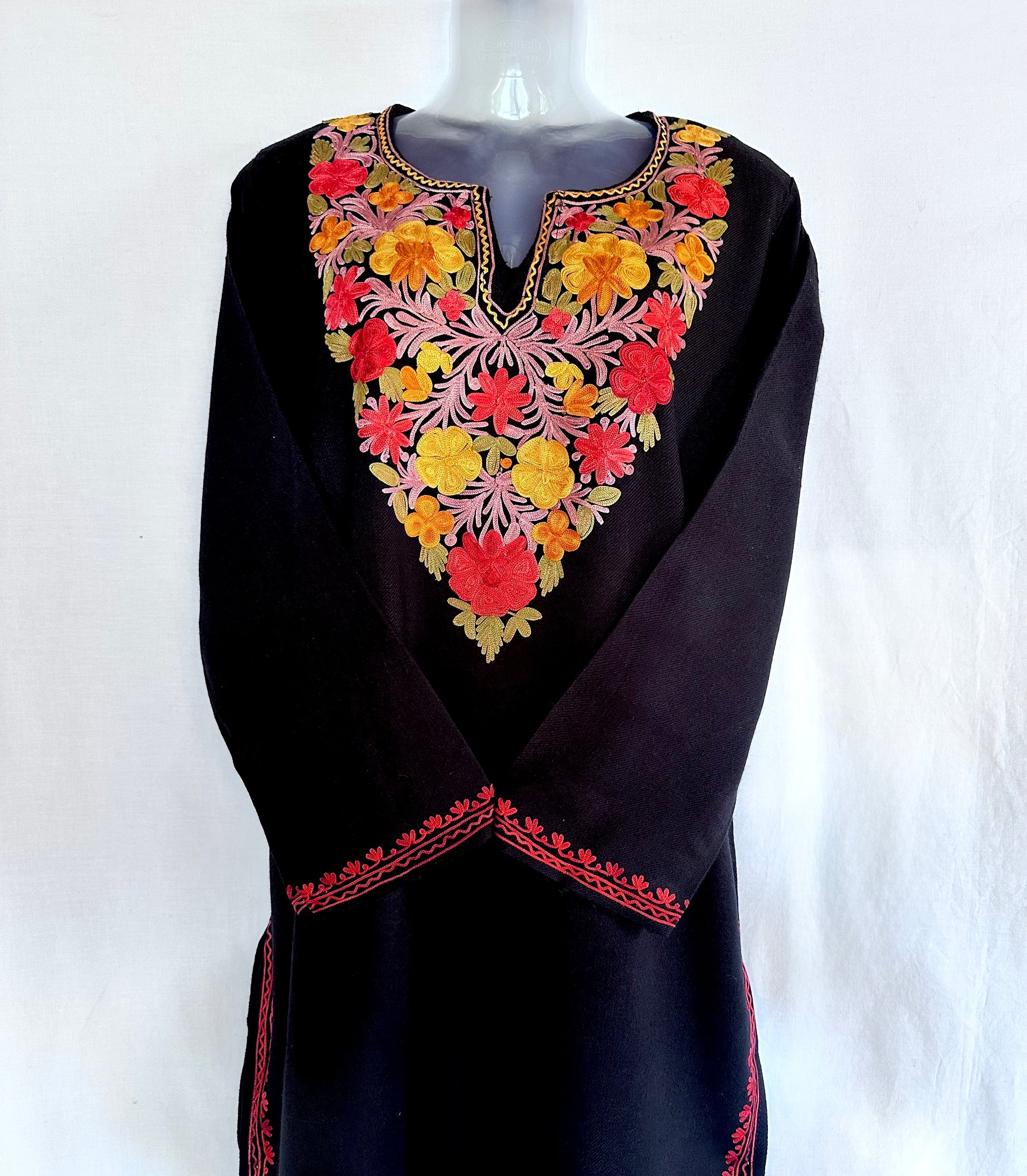 Bold yet beautifully balanced, this black kurta with multicolor embroidery is a celebration of art and elegance. The deep black base serves as a stunning canvas for vibrant threadwork that adds a lively touch during cold days.