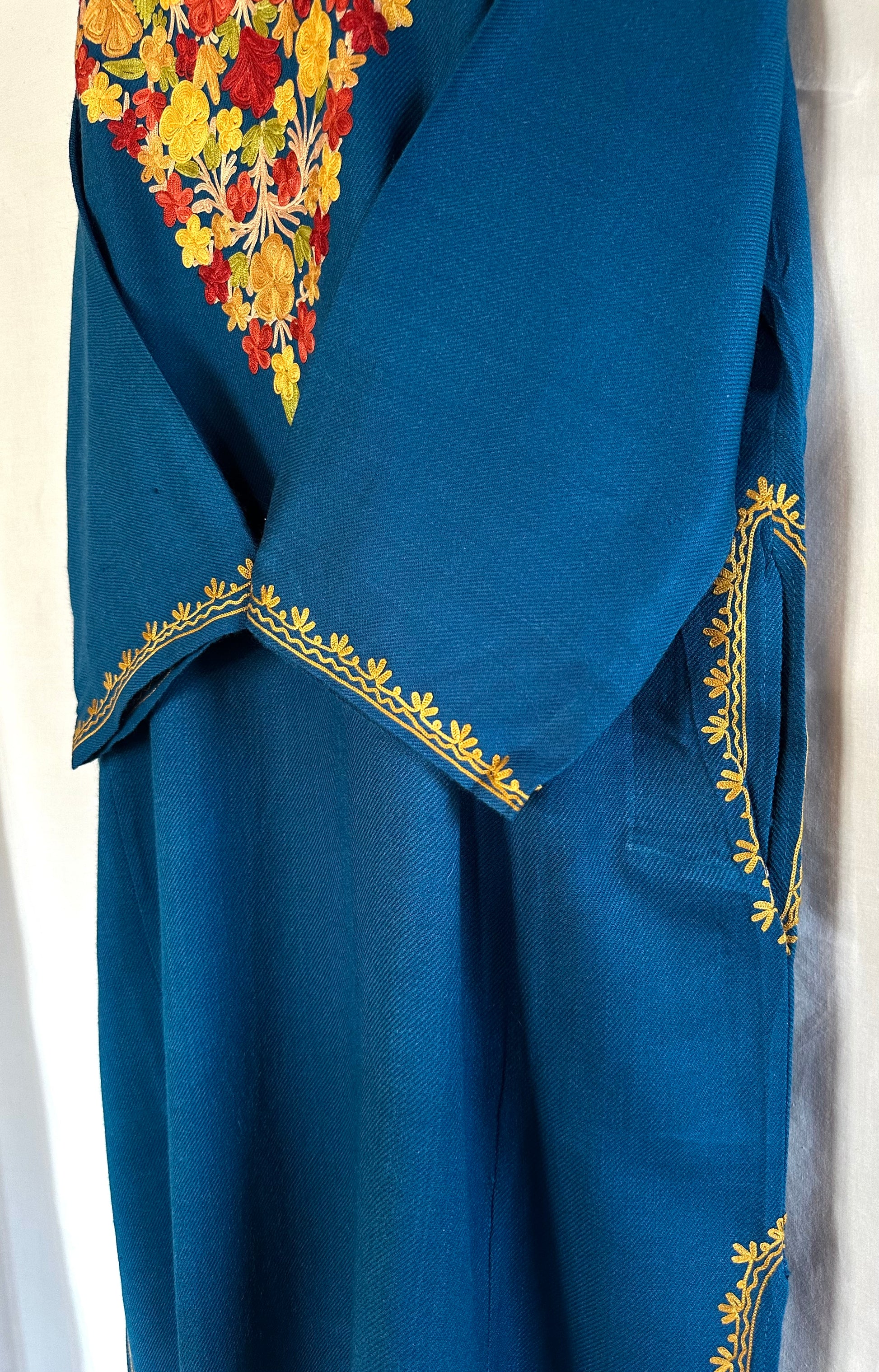 Wrap yourself in the warmth of winter hues — this cobalt blue pheran is your cozy statement of style.