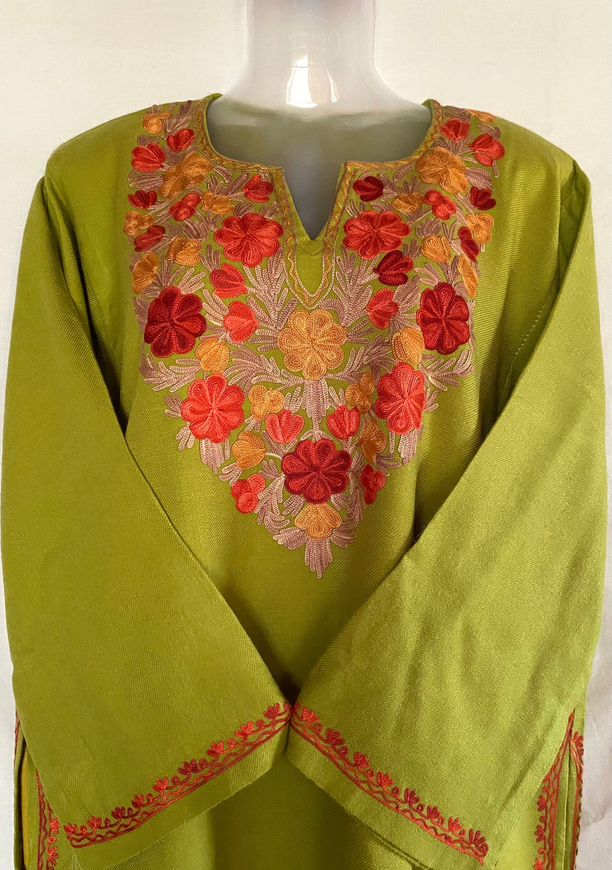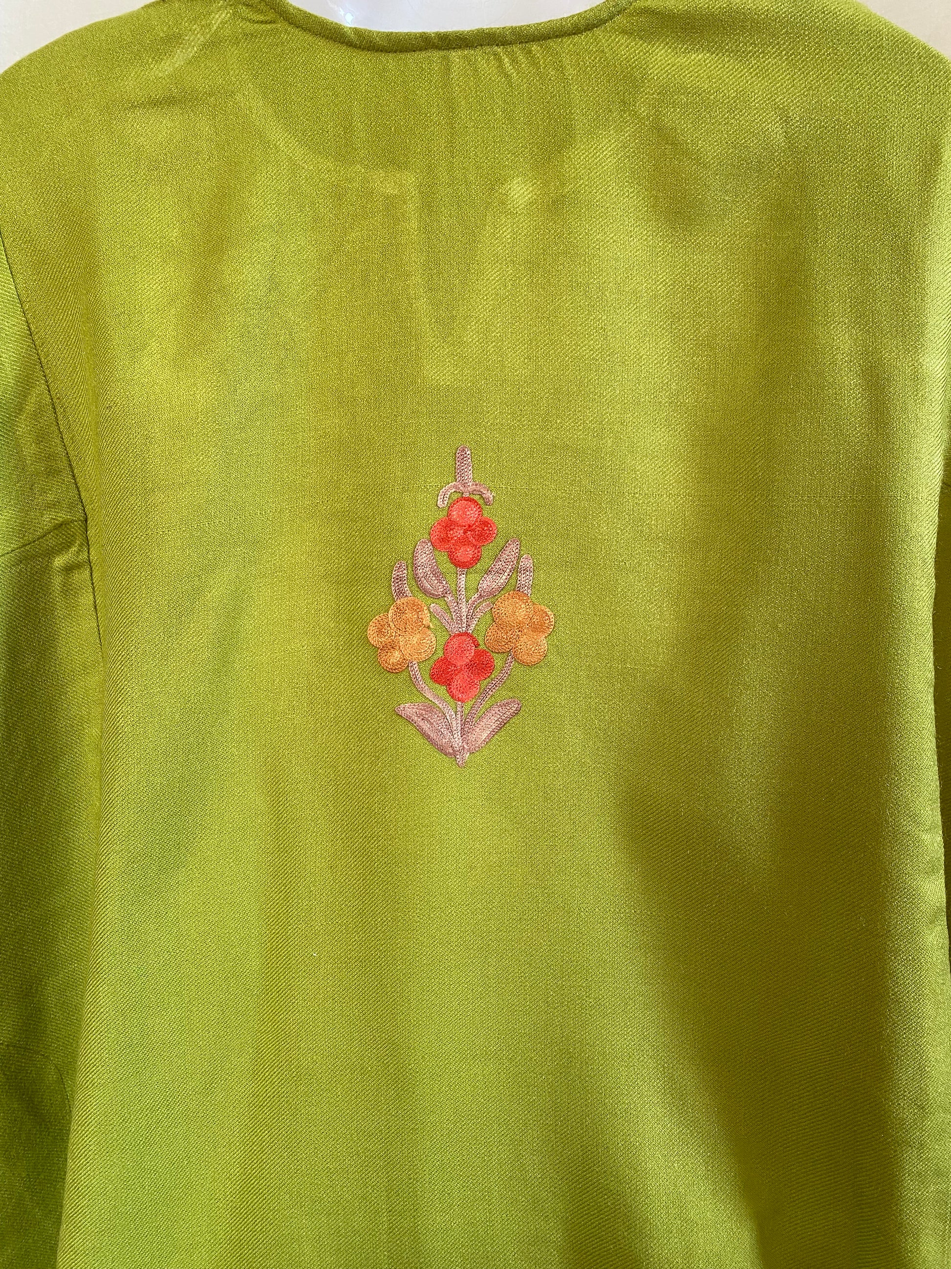 Rustic, gentle, and effortlessly graceful—the light green pheran feels like home, like heritage wrapped in warmth.