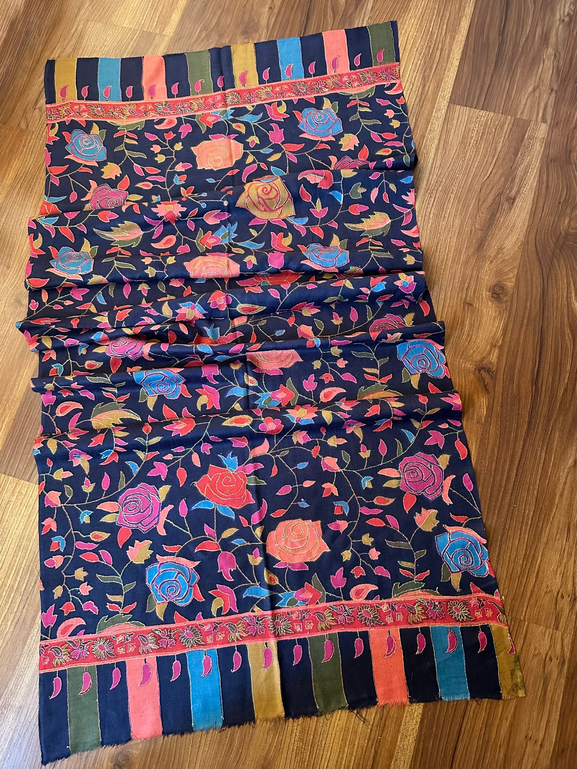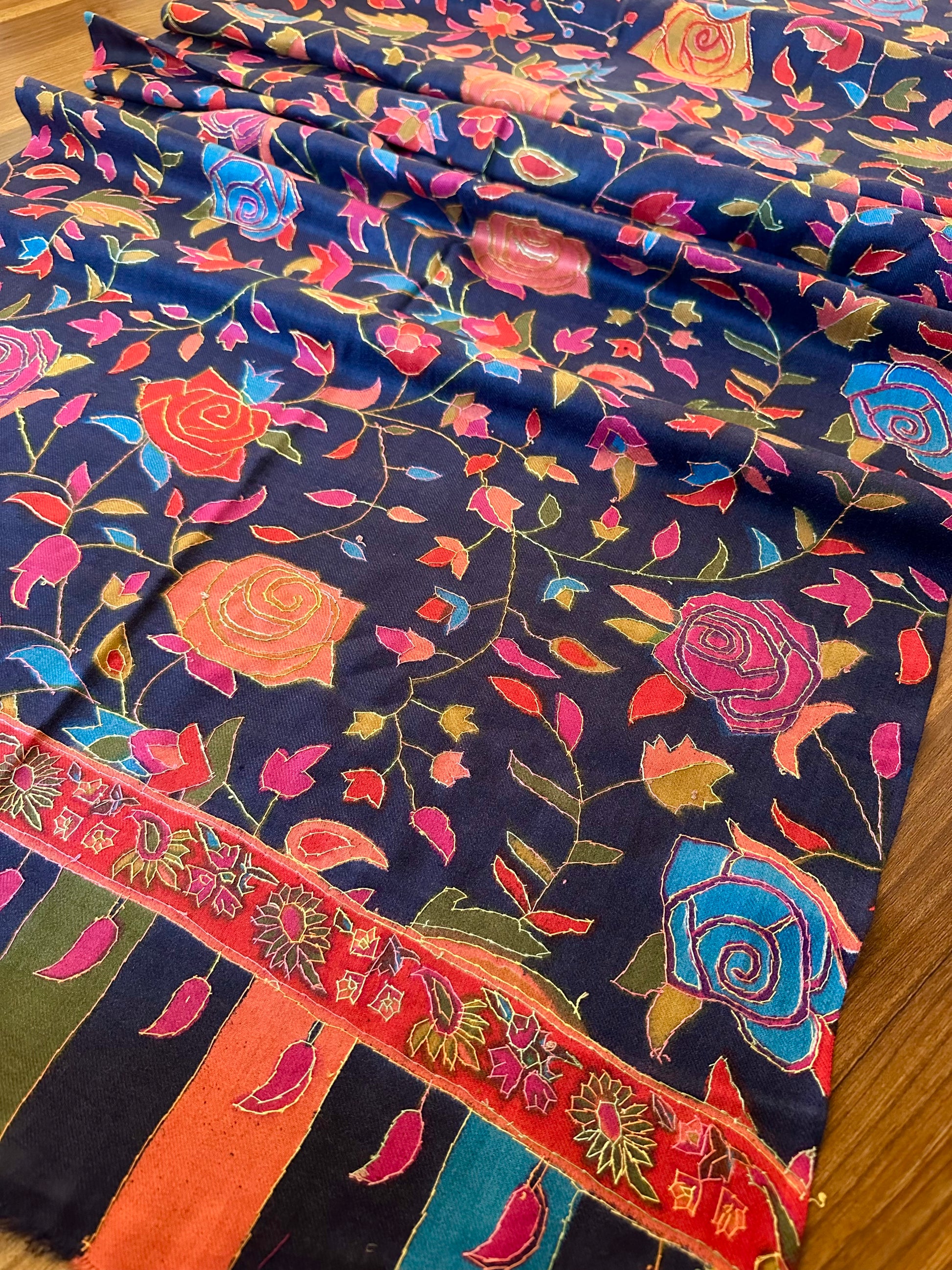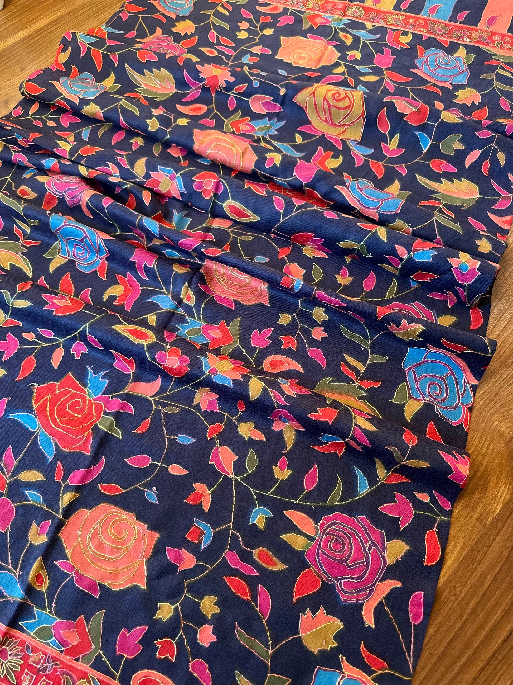 Grace meets heritage - with this royal blue kalamkari stole she carries centuries of craftsmanship with effortless elegance.